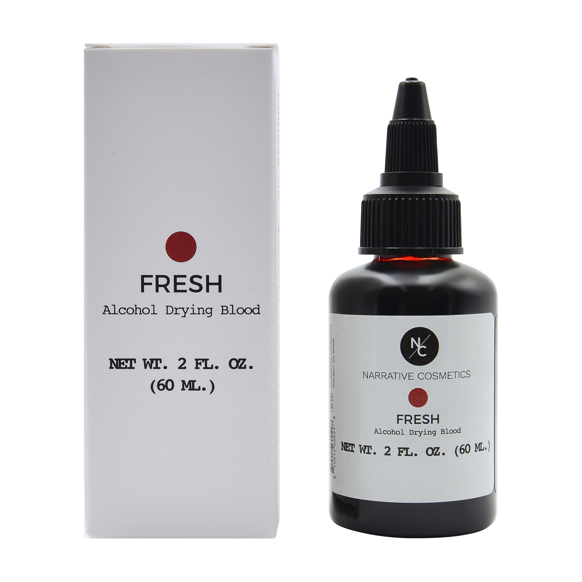 The Narrative Cosmetics alcohol bloods dry to the touch shortly after application while retaining a wet, glossy appearance. This makes the bloods perfect for SFX applications where durability is required.