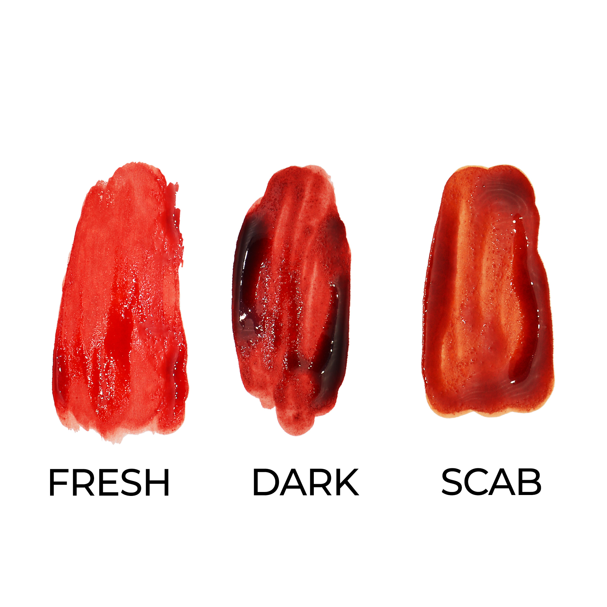 The bloods won’t transfer or smudge and will keep their fresh appearance for ultra-realistic effects.
