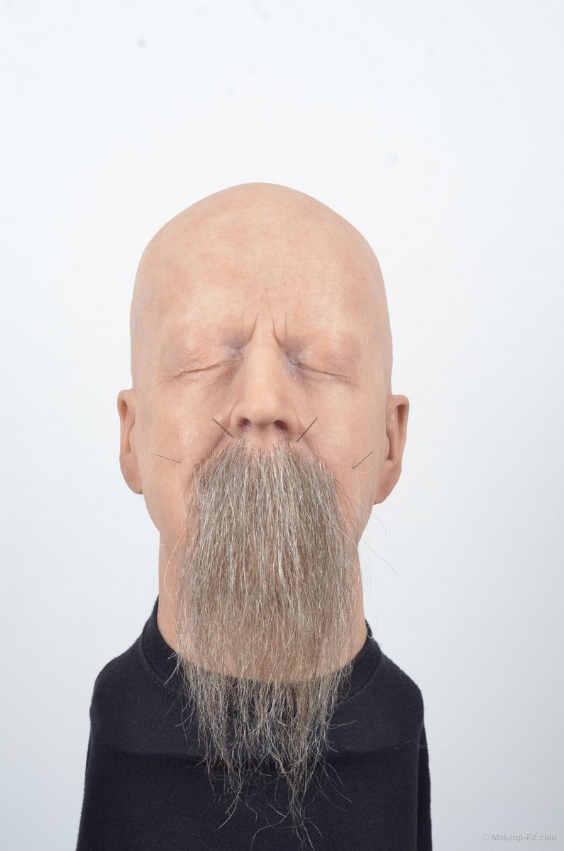 Handmade human hair lace moustache for stage and screen. Colour: Dark Brown Fischbach+Miller reference colours: 80% 205, 20% 207 Made from 20 cm/8" long human Asian hair on thin nylon lace. We sell most of our moustaches in 5 different sizes. Download our Size chart (pdf)